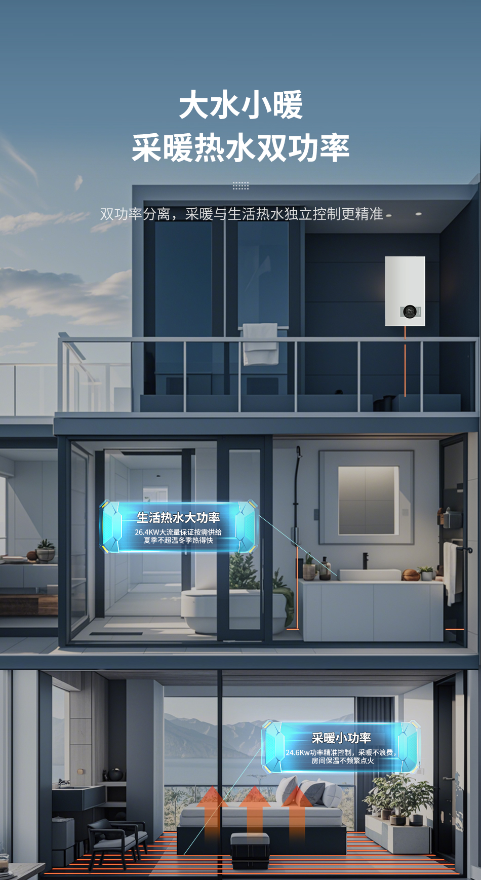 Benzi系列壁挂炉运用三效联动技术,将燃烧/水利/热需求三者工况,通过程控实现了各自高效运行下的有效联动。