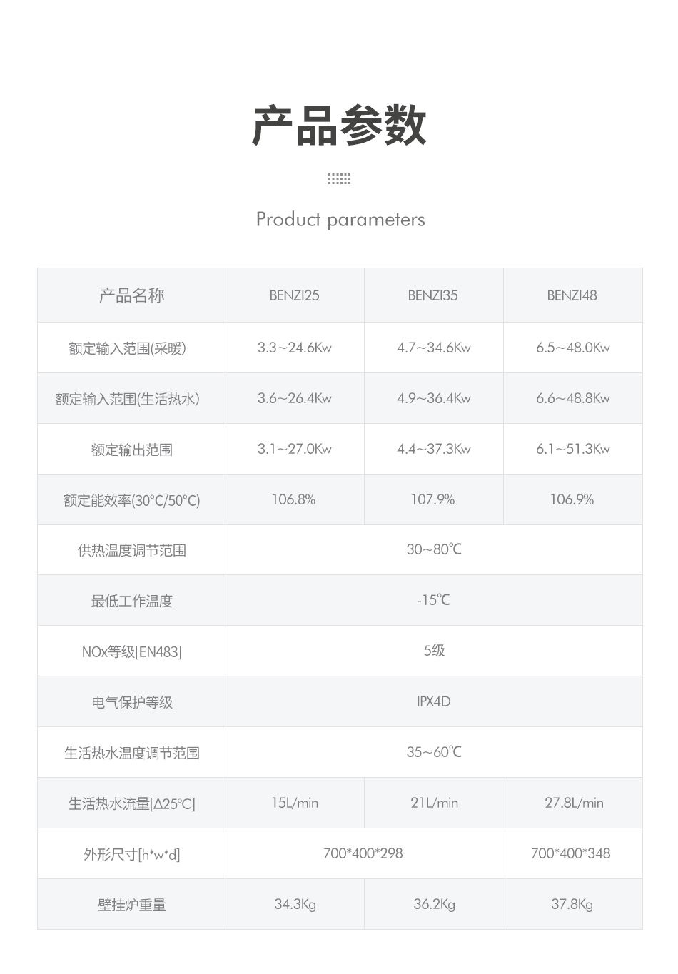 Benzi系列壁挂炉采用雷波[Lob-pid]自学习技术调控热水温度,根据基础水温、设定温度及水流量自动调整加热功率。